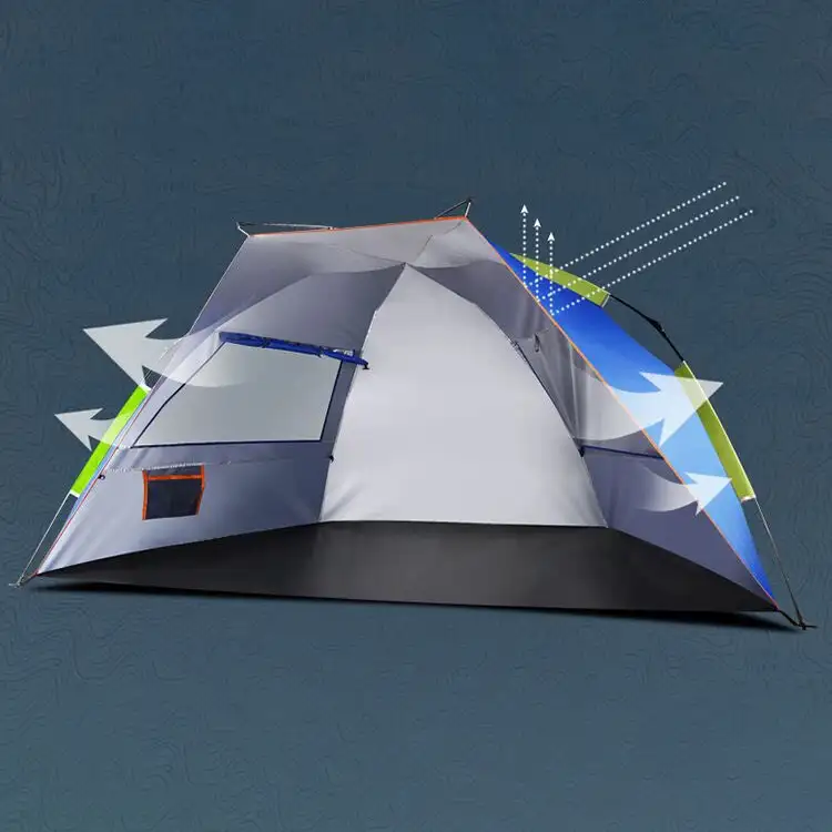 เต็นท์บังแดดสำหรับการตั้งแคมป์พร้อมสมอทราย ออกแบบมาสำหรับพื้นที่นุ่ม เช่น ชายหาดและทะเลทรายโดยเฉพาะ สถานการณ์การใช้งานและจุดเด่นด้านการใช้งานมีดังนี้: