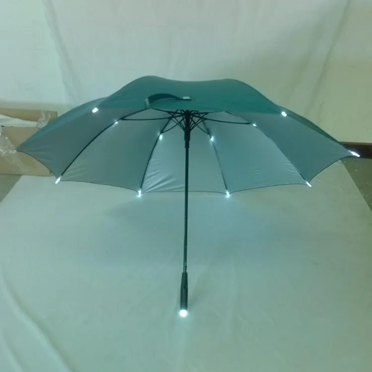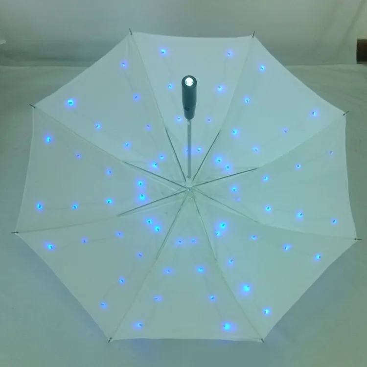 ลูกปัดไฟ LED ถูกฝังอยู่ในที่จับร่มหรือซี่โครงรองรับโหมดการเปลี่ยนแสงคงที่/รุ้งคงที่เพื่อเพิ่มความสนุกสนานของวันฝนตก ในขณะเดียวกันก็มีความช่วยเหลือด้านแสงสว่างและมือจับรวมฟังก์ชั่นไฟฉาย LED เพื่อให้แสงสว่างในท้องถิ่นในสภาพแวดล้อมที่มืดปรับปรุงความปลอดภัยในเวลากลางคืน